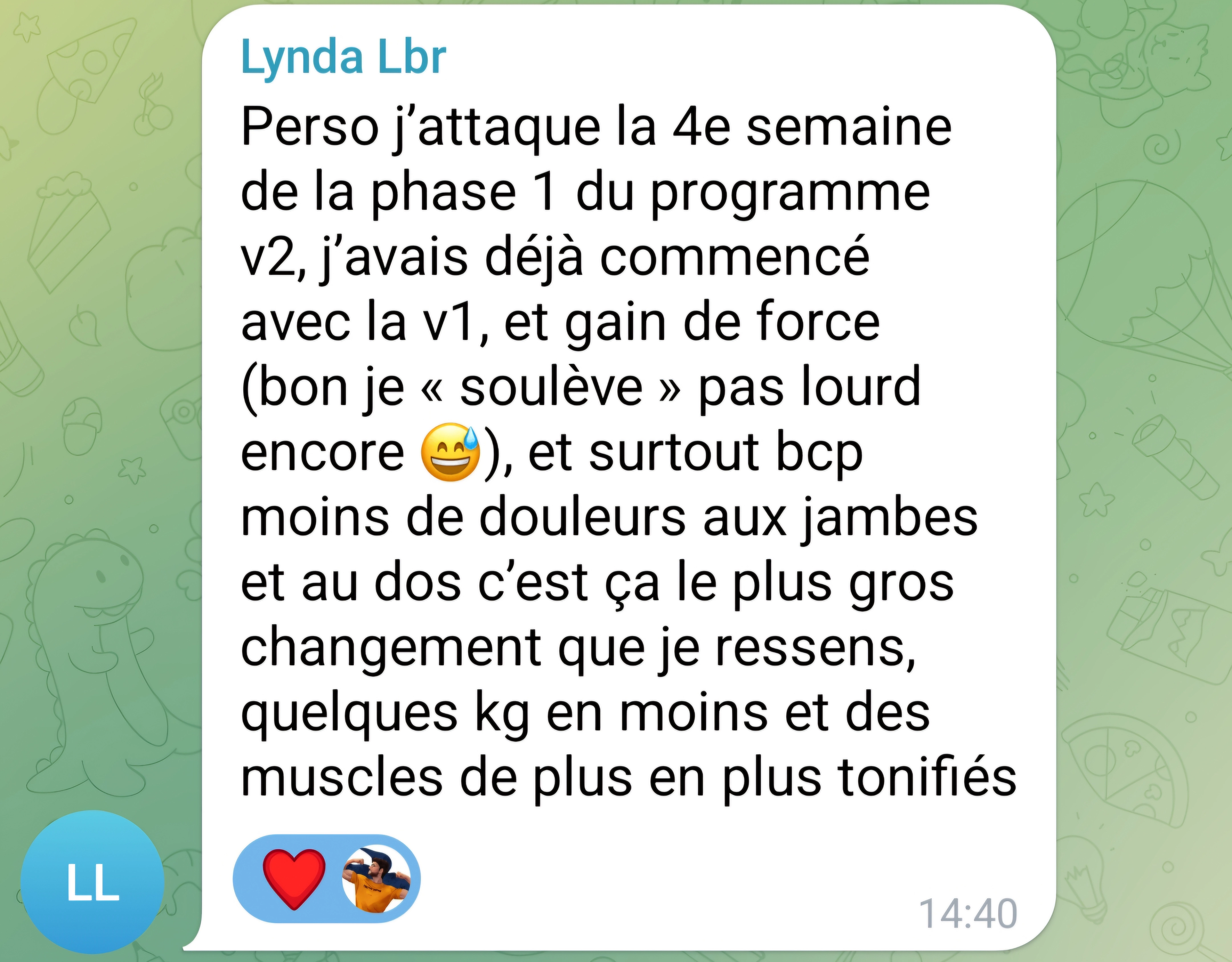 Je t’encouragerai également à te lester un peu, mais tu n’auras pas besoin d’haltère ni de matériel spécifique : je te partagerai des astuces que tout le monde pourra faire (ce n’est même pas obligatoire)