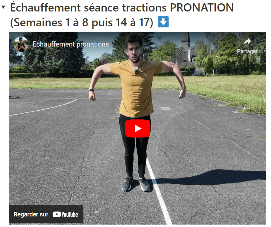2 séances par semaine de 50 - 55 minutes pour exploser sur tes tractions, mais aussi tes pompes/dips en fonction du matériel que tu as à disposition.
